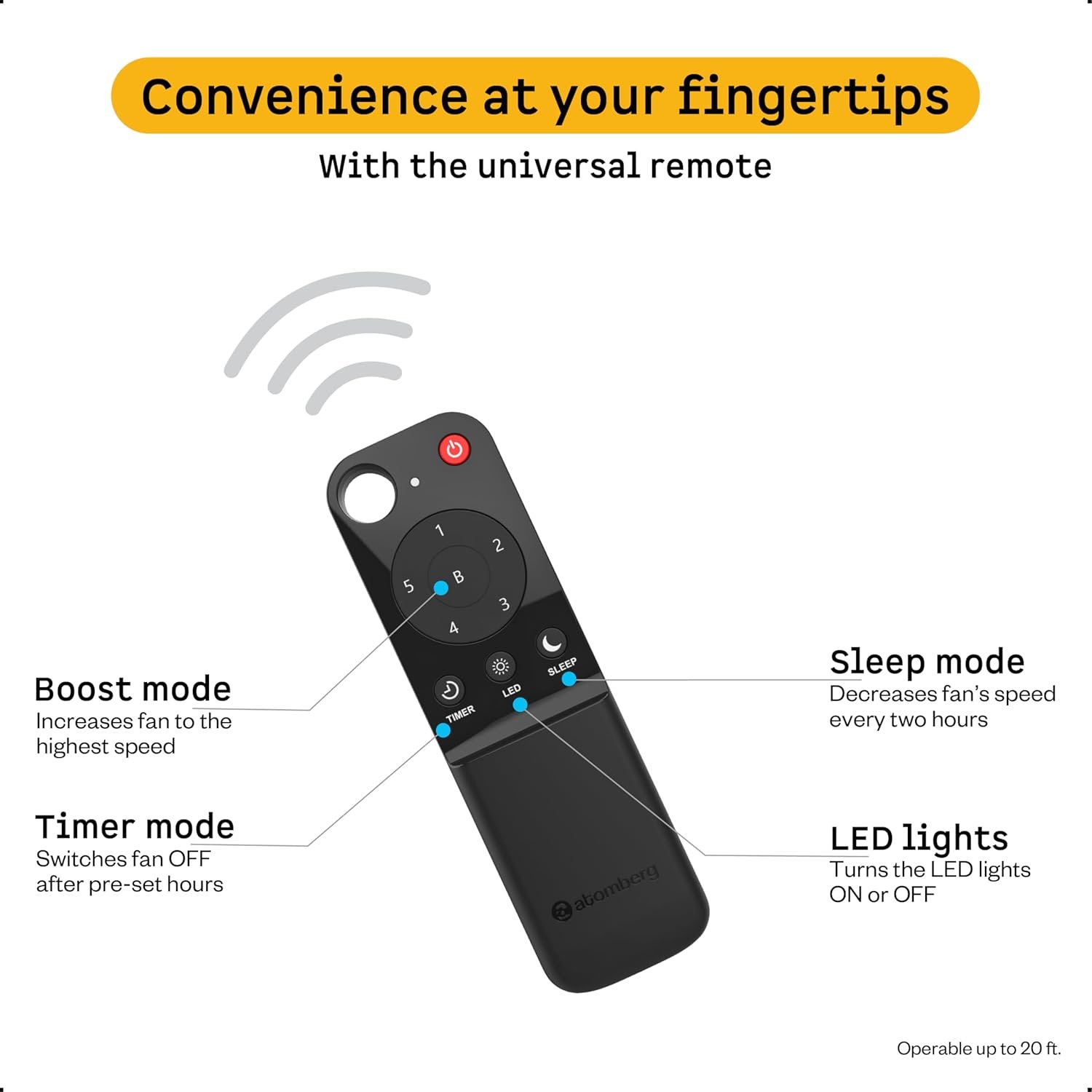 Control the fan easily using the remote: